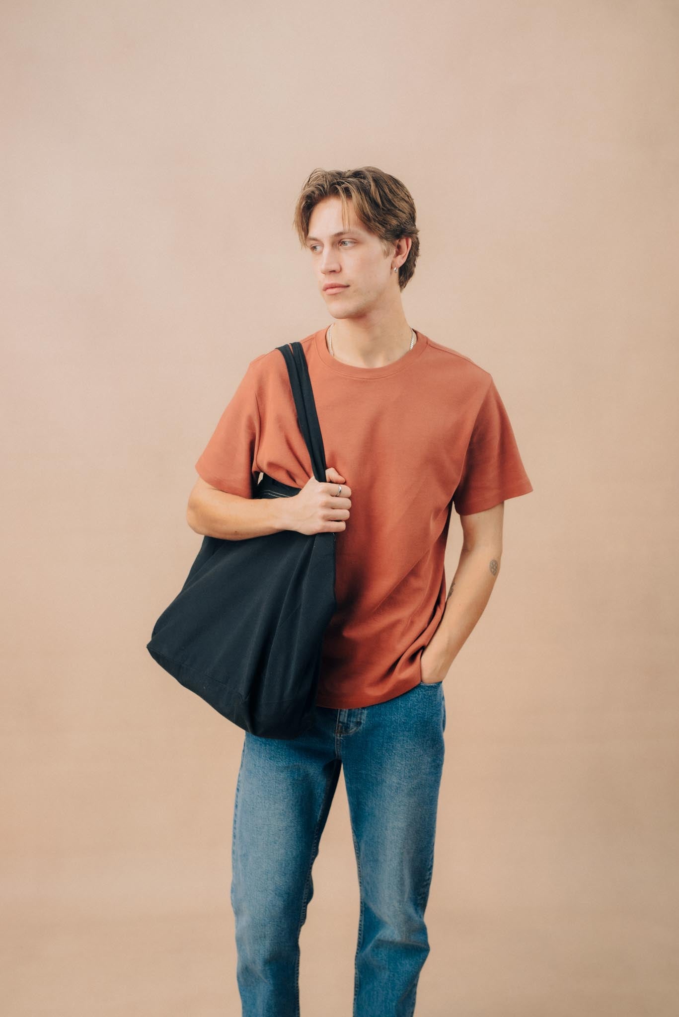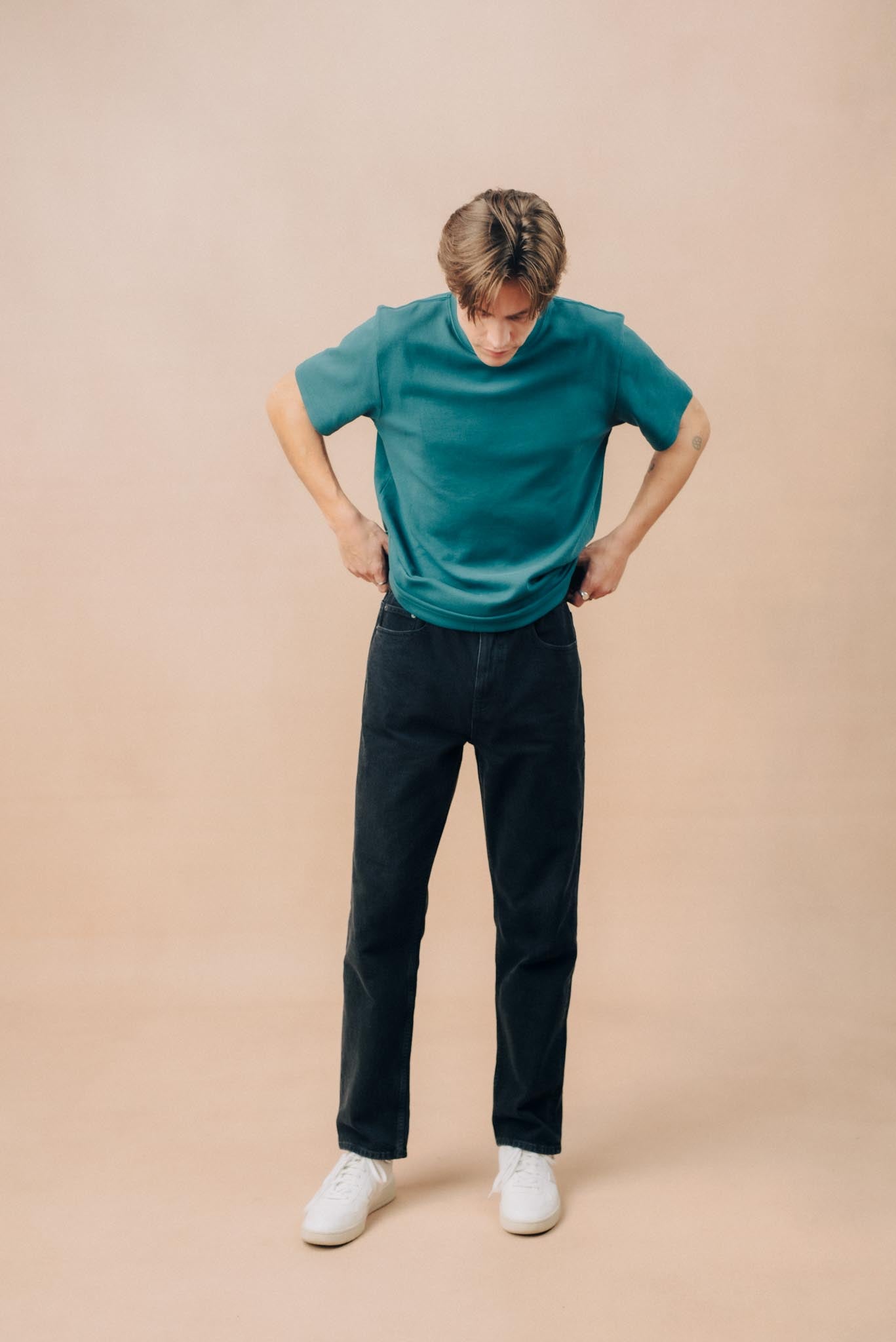 At a hefty 240gsm, this organic cotton tee is almost substantial enough to have its own gravitational pull. It offers a reassuringly thick timeless cut that hangs perfectly. It's stitched in a solar-assisted factory by workers paid good wages.