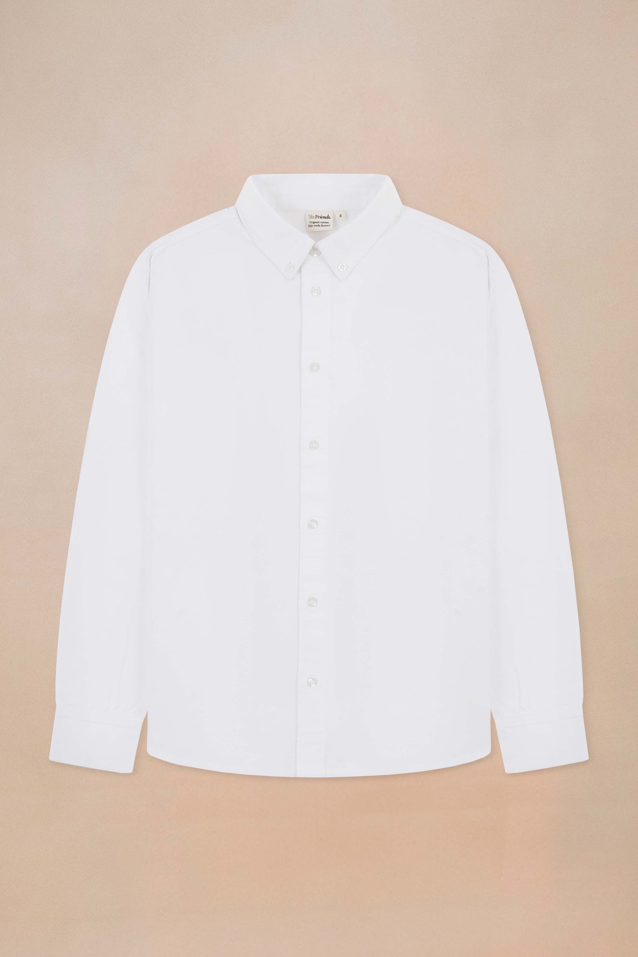 Our organic Oxford shirt features a lightly textured weave, giving it the kind of subtle beauty that makes people say, “hey, nice shirt.” We add a tonal Yes Friends logo embroidered inside the placket — an almost invisible writing you can point to when someone asks where you found an ethically made shirt that looks it should be twice the price you paid.